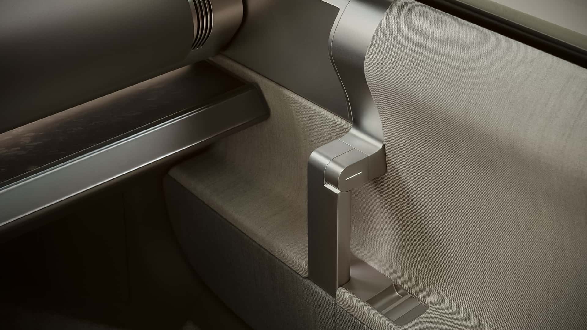 Enterijer konceptnog modela cilja na esencijalnu eleganciju: materijali inspirisani titanijumom, tasteri od anodizovanog aluminijuma i čiste forme. Tehnologija sledi princip „Shy Tech“, odnosno suptilne prisutnosti koja omogućava da fokus iskustva u vožnji ostane upravo na vožnji. Primer za to je displej od 10,4 inča koji se uvlači i pojavljuje samo kada je potreban, uz kontrole na volanu i konzoli osetljive na dodir. Sve suvišno je izostavljeno.