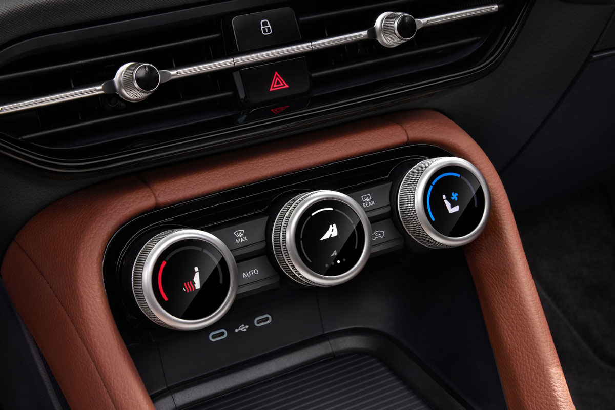 Komande za podešavanje temperature i jačine zvuka više nisu neposredno ispod samog displeja, već su premeštene na centralnu konzolu, u vidu „smart“ komandi. Reč je o tri okrugla hromirana dugmeta; unutar svakog od njih je displej u boji prečnika 32 mm. Funkcije im se menjaju dugim pritiskanjem, dok se podešavanje odabrane obavlja okretanjem. Na primer, centralni služi za pojačavanje muzike (glavna funkcija), ali i za podešavanje brzine ventilatora, promenu pravca izduvavanja vazduha, promenu režima vožnje i zumiranje mape navigacije. Levi i desni podešavaju temperaturu i nivo grejanja, odnosno ventilacije u sedištima.