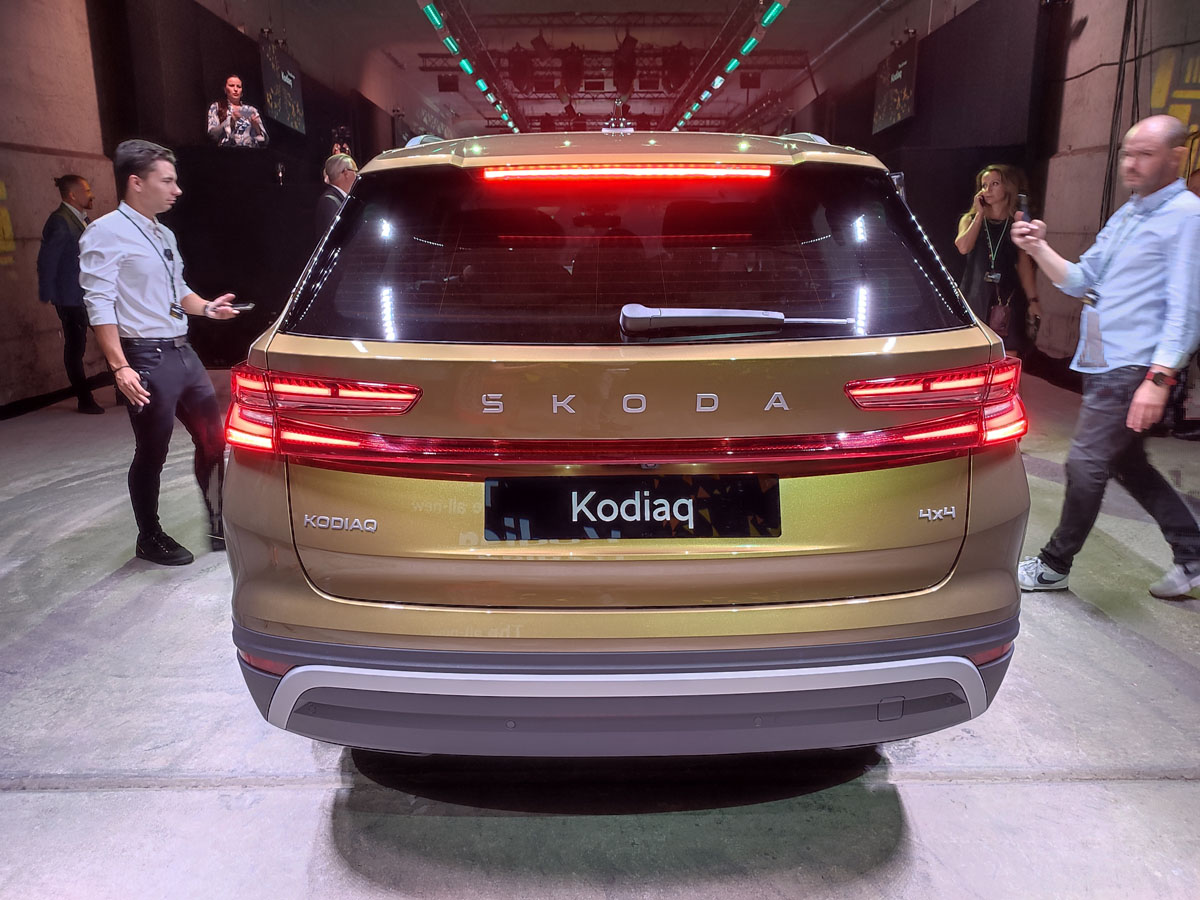 Prvi utisak je da je Kodiaq postao još luksuzniji. Izgleda vrlo glamurozno sa novim 3D zadnjim svetlima, Matrix farovima i LED trakom od 14 elemenata između farova koja deluje kao da je provučena iza rešetke prednje maske. Inače, sama maska je aktivna i zatvara klapne, što je, između ostalog, doprinelo poboljšanju koeficijenta aerodinamike na 0,282 Cd. Karoserija je još elegantnija, sa zadnjim stubom u boji brušenog aluminijuma. Posebno se dobro uklopio uz novu, zlatnu boju. Na zadnjem delu je i redizajnirani logo Škode, odnosno naziv brenda ispisan novim fontom.