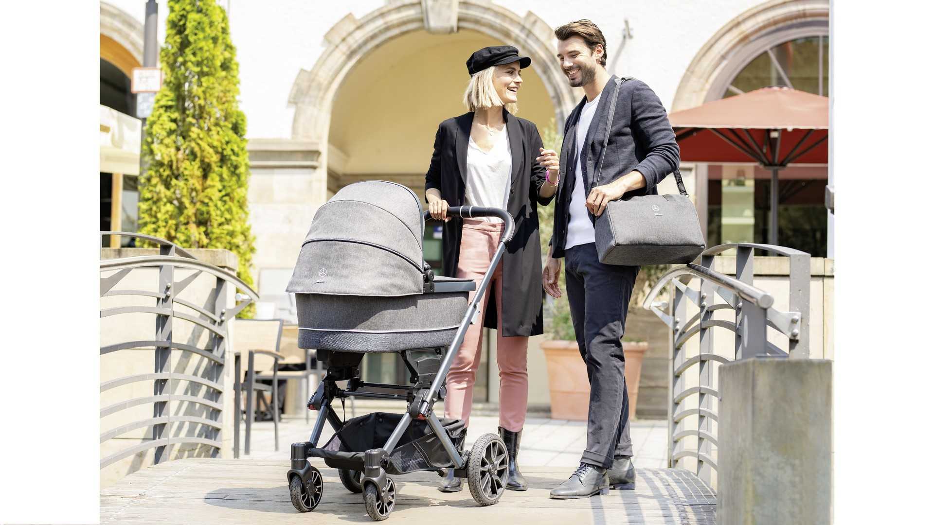 Naravno, ručke za guranje su teleskopske, pa roditelji višeg stasa ne moraju da hodaju pogureni. Tu su još parkirna kočnica i fensi suncobran u Mercedesovom stilu.