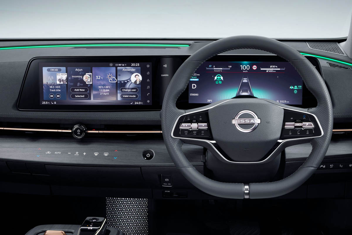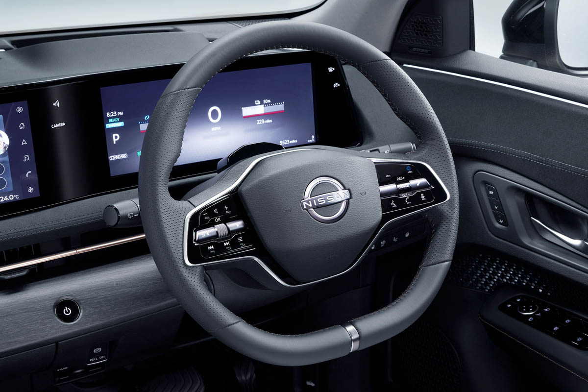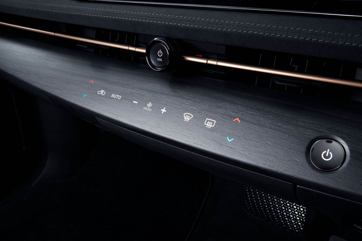 Nissan Ariya ima zanimljiv ne samo pogon već i unutrašnjost. Skoro da i nema fizičkih tastera već su osetljivi na dodir i to integrisani u obloge od drveta.