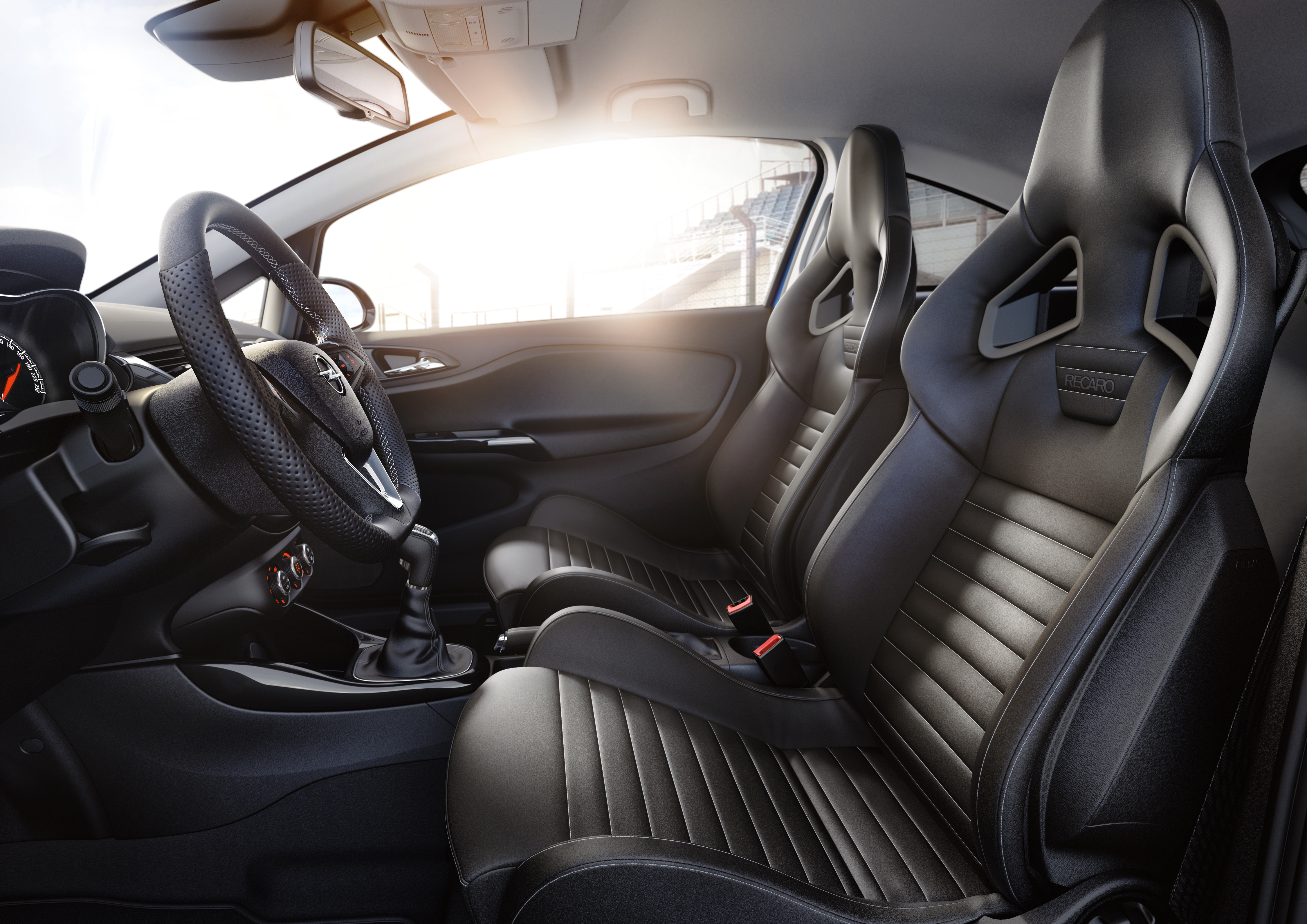 Sportski ambijent se nastavlja i u kabini. Dominiraju Rekaro sedišta, koja putnicima pružaju bočnu podršku. Volan presvučen kožom, zaravnjen je na dnu. Atmosferu kompletiraju OPC ručica menjača i sportske papučice, uz karakteristične u OPC instrumente.