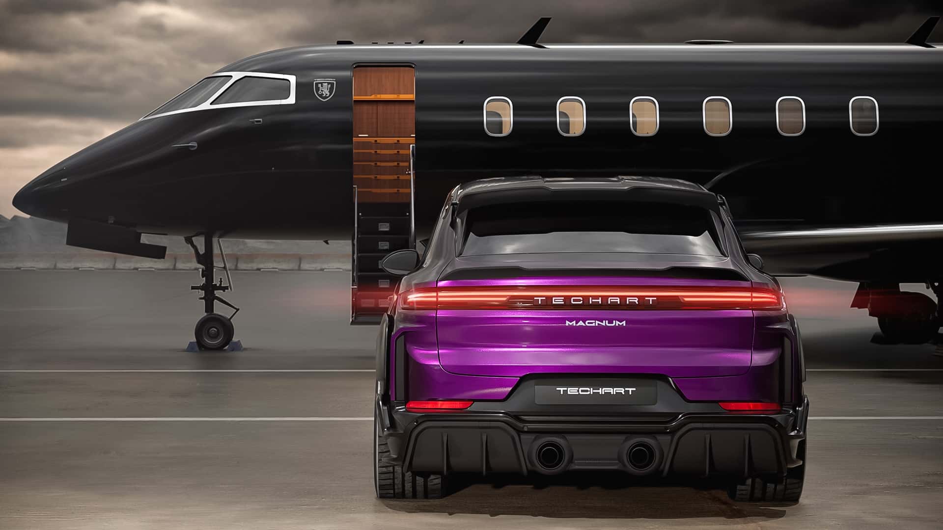 Ovaj difuzor okružuje ili četiri spoljašnja izduvna završetka ili dve ogromne cevi u sredini. To zavisi od toga za koji se izduvni sistem ovog Porsche tjunera iz Leonsberga odlučite. Bočni sportski izduv za Cayenne pruža “dubok, snažan zvuk”. Ako vam to nije dovoljno, verovatno trebalo da izaberete drugu varijantu, razvijenu posebno za Magnum, koja prema Techartu “svojim još sportskijim i upečatljivijim zvukom pruža neponovljiv akustični spektakl”.