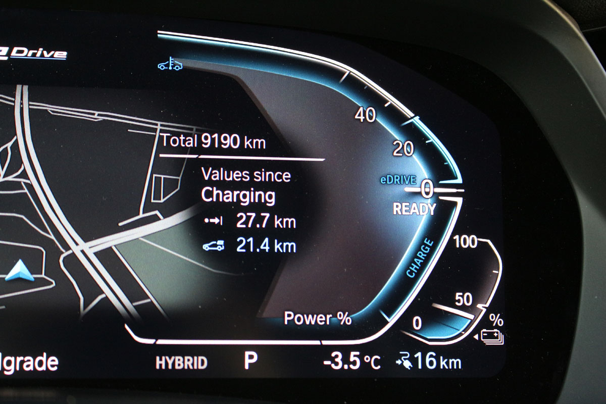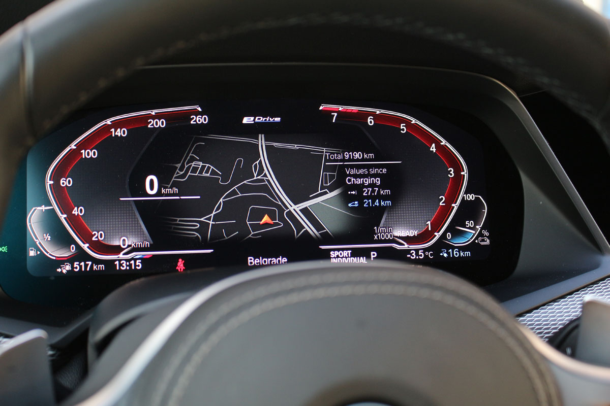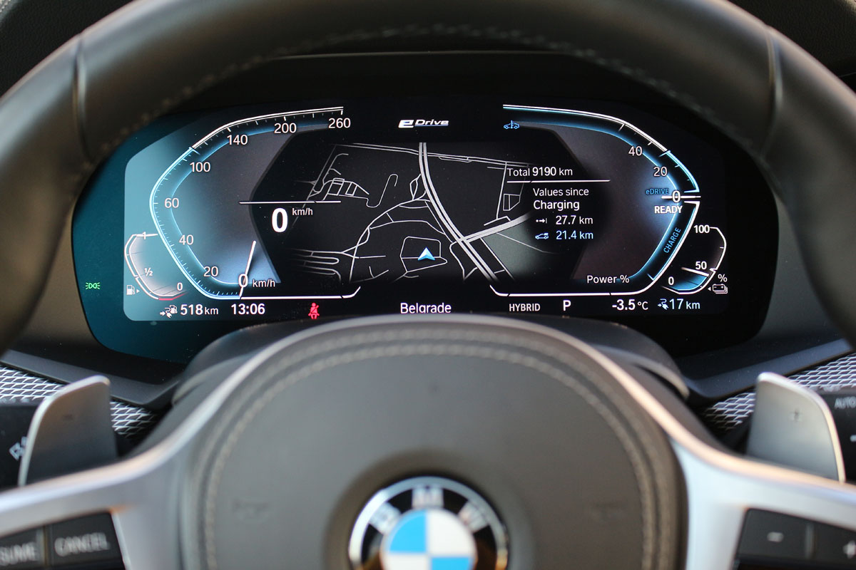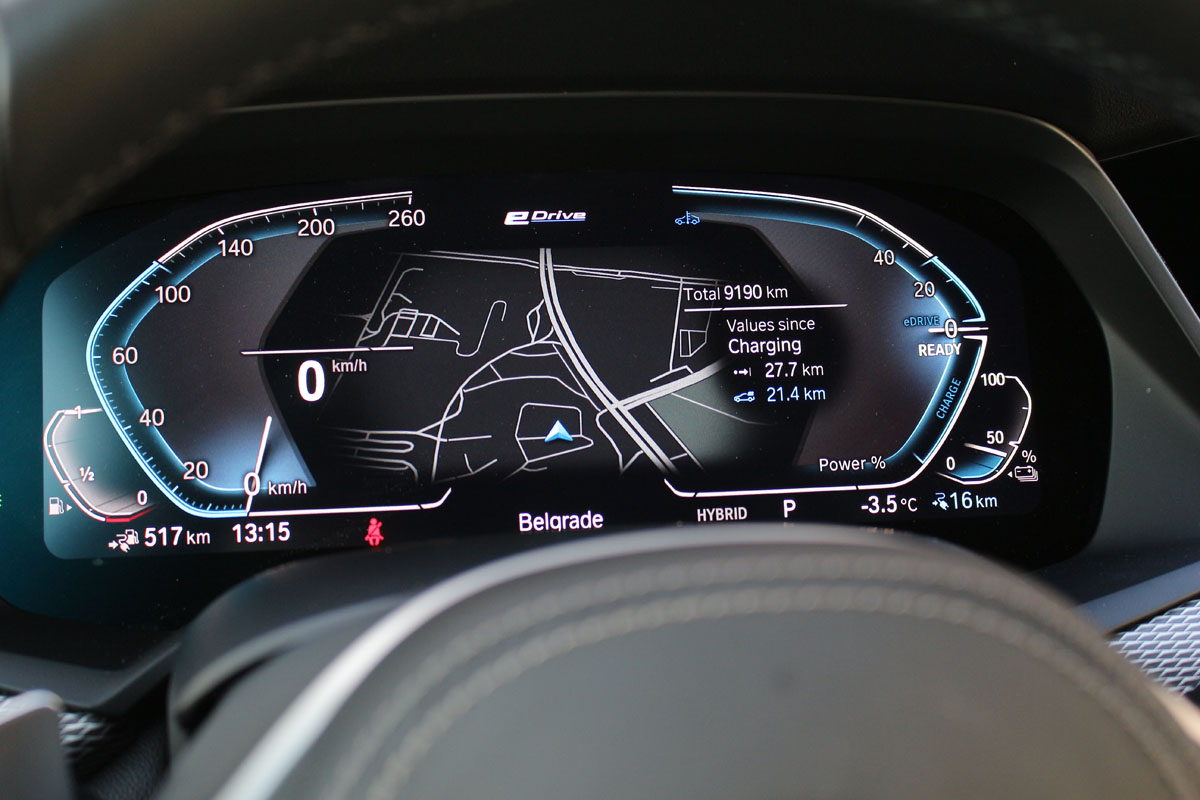 Shvatamo i zašto je BMW postavio granicu; baterija se već ozbiljno troši, pa je sasvim logično da se u čisto električnom modu vozi samo po gradu.