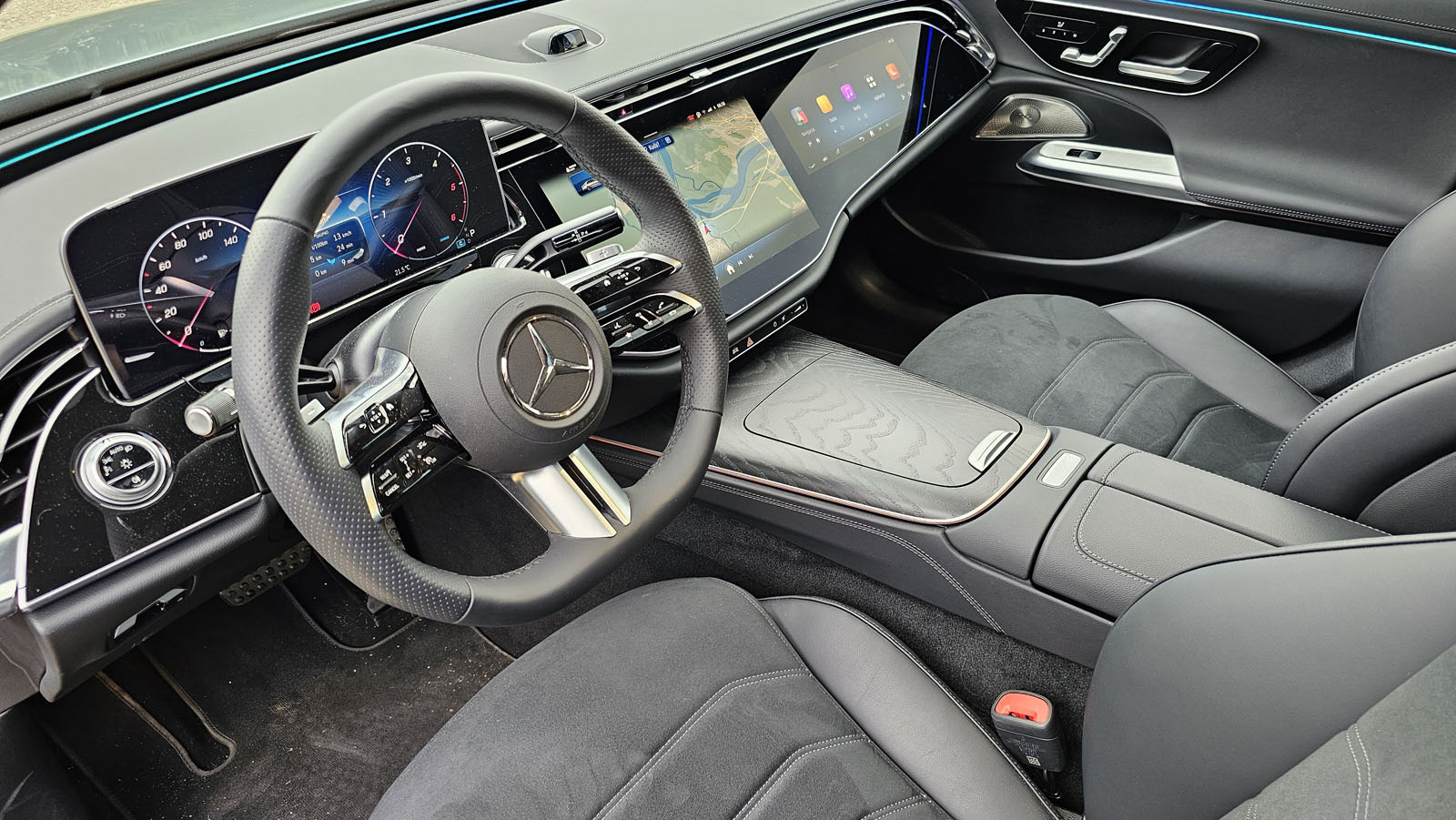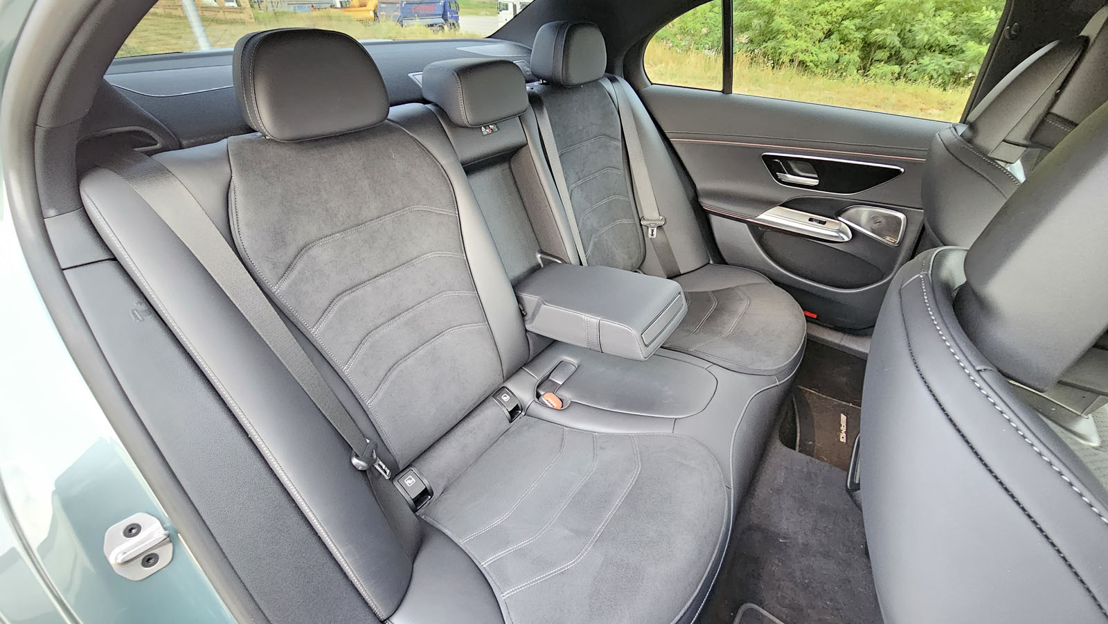 Svakako, ono u čemu je Mercedes neprikosnoven jeste komfor – kako za vozača tako i za sve ostale putnike. Prednja sedišta su odlično profilisana, grejana, ali u ovom slučaju (pošto su presvučena alkantarom) nisu i hlađena. Za hlađena (ventilirana) sedišta potrebno je odabrati neku od opcija sa napa perforiranom kožom. Sa druge strane, ono što je novina u „E-klasi“ jeste da su prednja sedišta dobila funkciju masaže što može prilično da olakša i smanji umor vozača na dugim relacijama.  Prostora i napred i pozadi ima više nego što je dovoljno i to u svim pravcima. Materijali u enterijeru su fino odabrani, prijatni pod prstima, a završna obrada je nešto što se kod limuzina ovog nemačkog brenda ne dovodi u pitanje.