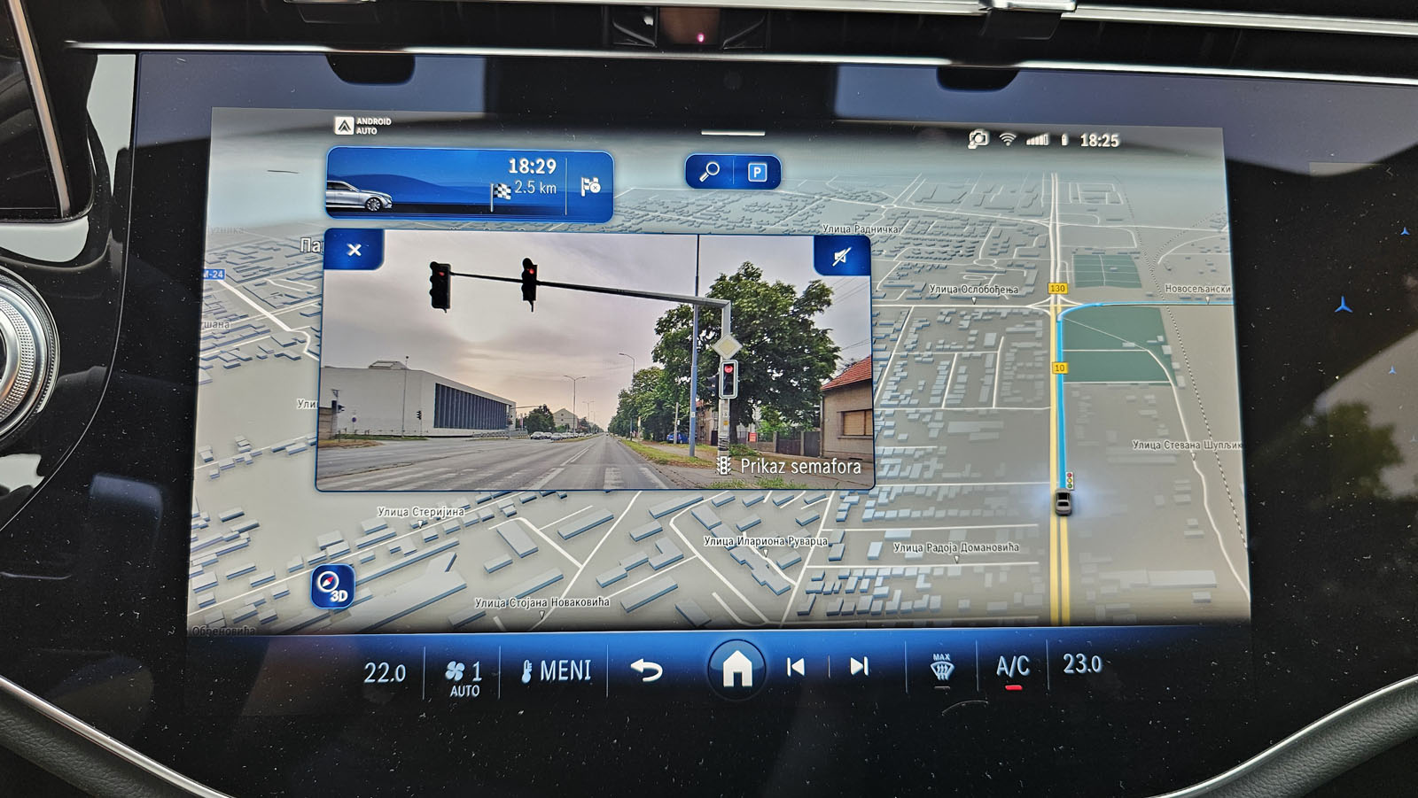 Izborom destinacije pokreće se navigaciona ruta koja vas uz dinamičku signalizaciju na centralnom displeju, na komandnoj tabli ili na hed-ap displeju navodi do odredišta pružajući izuzetno preciznu i nadasve zanimljivu grafiku kroz prikaz „proširene realnosti“ kako ju je Mercedes nazvao. Na realnom snimku sa prednje kamere vam se dinamički prikazuju strelice gde bi trebalo da skrenete i natpisi ulica u koje ulazite. Osim pokazivanje rute, navigacioni uređaj će vam prikazivati i saobraćajne znakove, zastoje na pute, rekalkulacije ruta, zatvorene puteve, naplatne rampe na kojima se morate zaustaviti i još mnogo toga.