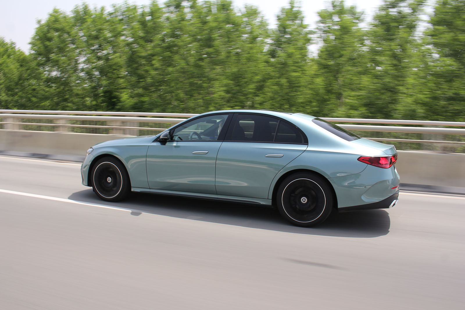 U vožnji „E-klasa“ deluje stabilno i sigurno u svim situacija i pri svim (razumnim) brzinama. Hendling je dličan, naginjanja karoserije nema, ogromni točkovi vas drže čvrsto prilepljenim za podlogu, a pri tom je zvučna izolacija perfektna te se ne čuju nikakvi zvukovi niti vibracije – ni iz motornog prostora, ni od podloge.