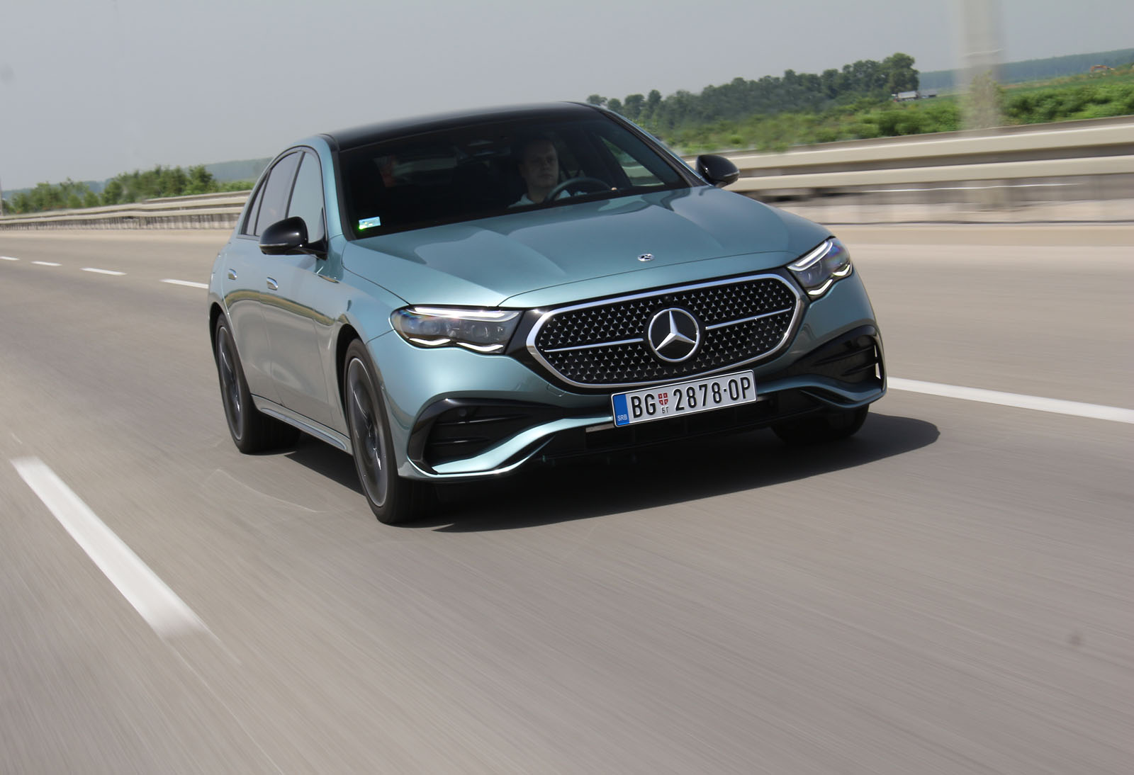 Na testu u našoj redakciji našla se nova Mercedesova „E-klasa“ u verziji „220d 4MATIC“. Ova limuzina je prošle godine detaljno restilizovana i dobila je mnogo toga novog, pre svega preuzetog sa perjanice brenda – „S-klase“. Ovo se vidi najviše u dizajnu zadnjeg dela, kao i u „iskačućim“ ručicama vrata. Unutrašnjost sa hiperskrin displejom koji se proteže duž cele prednje konzole je nešto u čemu „E-klasa“ koketira sa EQ modelima iz iste kuće, naglašavajući na taj način utisak modernih vremena koja dolaze.