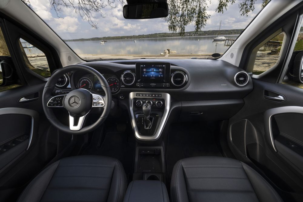 Najzanimljivija stvar kod „mercedesa T-klase“ jeste njegova upotrebljivost. Lakoća pristupa je izuzetna. Vozačeva vrata se otvaraju pod uglom od 90 stepeni i ostavljaju ogroman prostor za pristup. Sedište je na savršenoj visini tako da osobe sa poteškoćama u kretanju mogu vrlo lako sesti ili izaći iz auta, što se veoma ceni u današnje vreme. Kada se uđe unutra, primetićete dosta pregrada za ostavljanje predmeta na vratima, centralnoj konzoli, tradicionalnom pretincu za rukavice, pa čak i na/u krovu. Ovo su stvari koje je „T-klasa“ preuzela od svog vrednog rođaka „sitana“. Tu je i standardni MBUX infotejment sistem, dvozonski automatski klima uređaj, bežični punjač mobilnih telefona, kamera za vožnju unazad, električna parking kočnica i taster za pokretanje motora bez ključa. Dakle svi elementi koji doprinose komforu.
