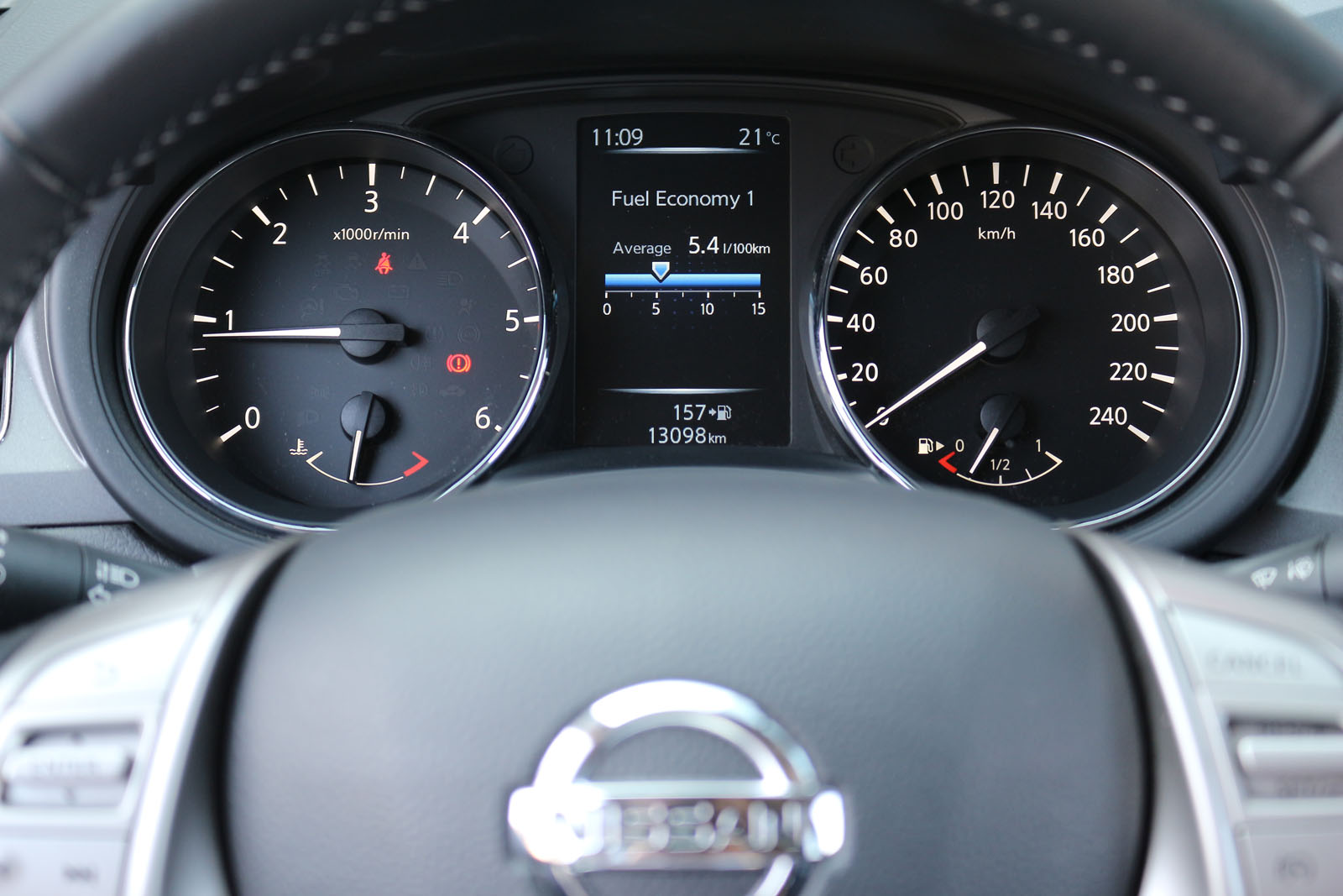 To je displej koji se ugrađuje i u ostale Nisan modele, tako da nas nije iznenadilo prisustvo monitora sa detaljnim podacima o pritisku vazduha u svakoj gumi pojedinačno, kao ni moda u kome dobijate informacije o sledećem skretanju sa GPS-a.