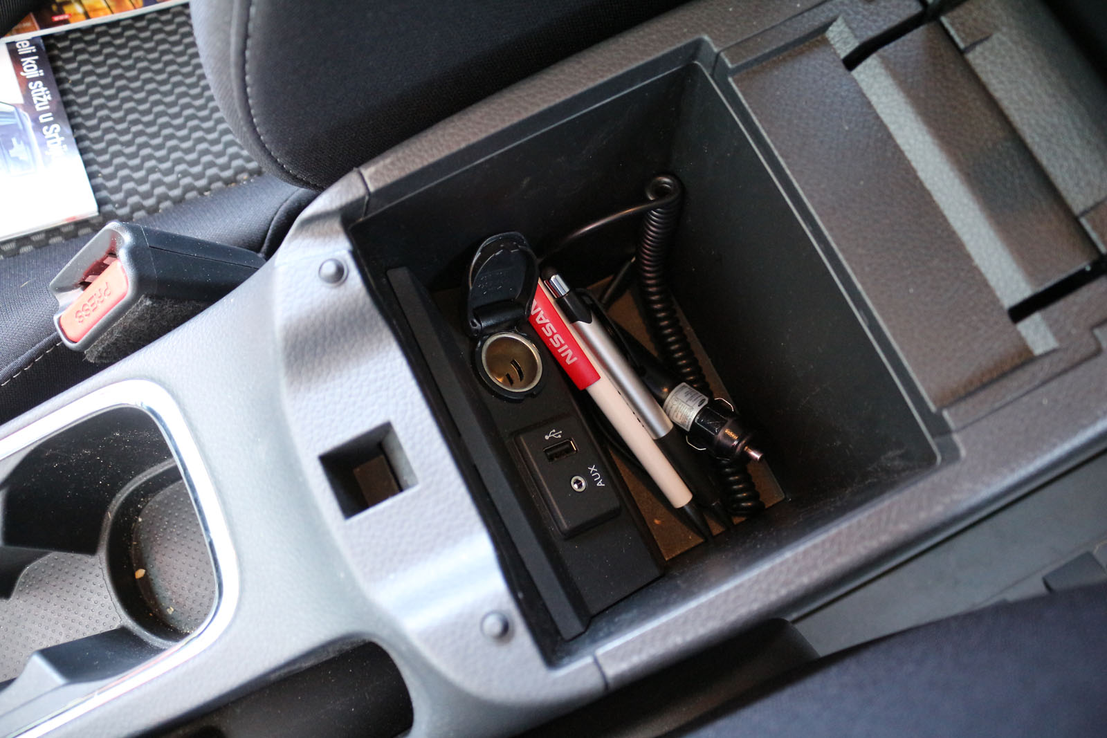 USB i AUX priključci smešteni su u pregradi ispod centralnog naslona za ruke. Dovoljno je velika da u nju stanu i najnoviji veliki mobilni telefoni, koji mogu da se pune preko posebne utičnice od 12 volti.