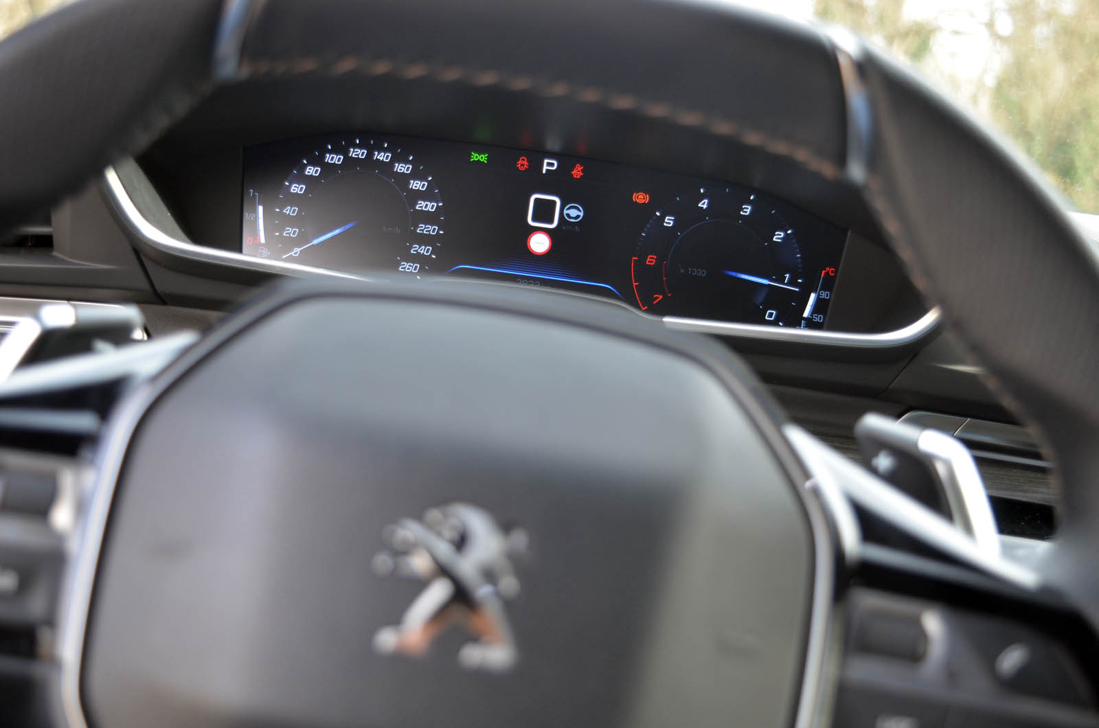 Usamljen, izgleda sjajno i pruža isti takav osećaj u rukama, ali u kombinaciji sa ostatkom premijum kabine, deluje kao istrgnut iz nekog trkačkog bolida i, bez obzira na visok kvalitet njegove izrade i brojnim komandama na njemu i okolo, možda bi trebalo da je malo većeg prečnika.