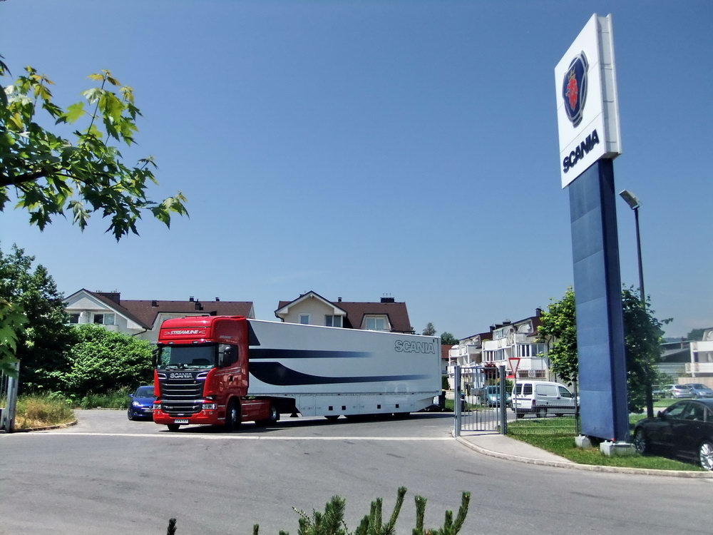 Vozilo koje smo mi testirali namenjeno je dugolinijskom transportu. „Čili-crvena“ boja kabina oslikava njegovu žustrinu iako sama kabina i ne spada baš u red najnovijih iz Skanijine ponude. Kako smo nezvanično saznali, već nekoliko godina unazad radi se na razvoju potpuno nove kabine, no ostavimo to za neke druge buduće teme.