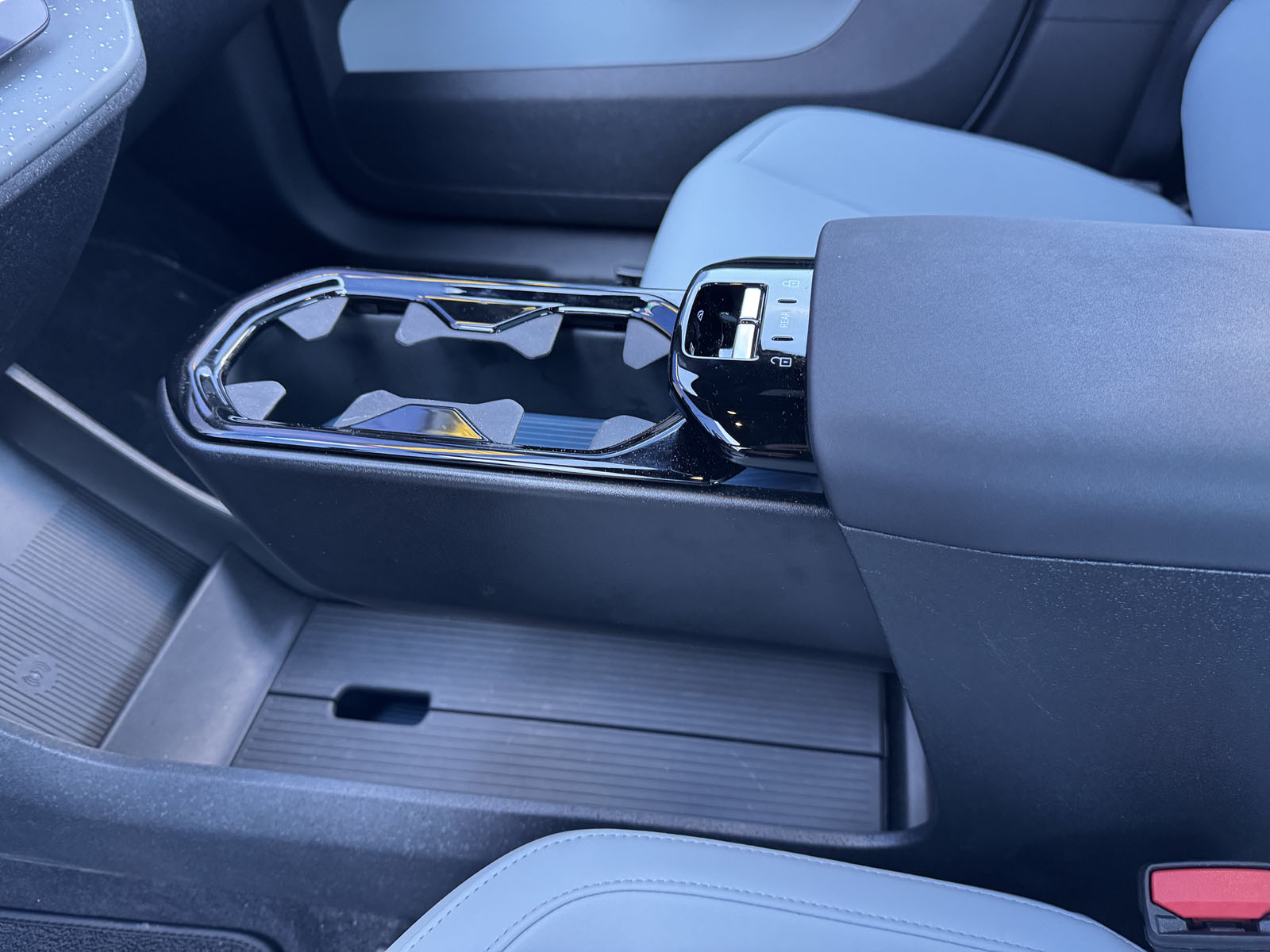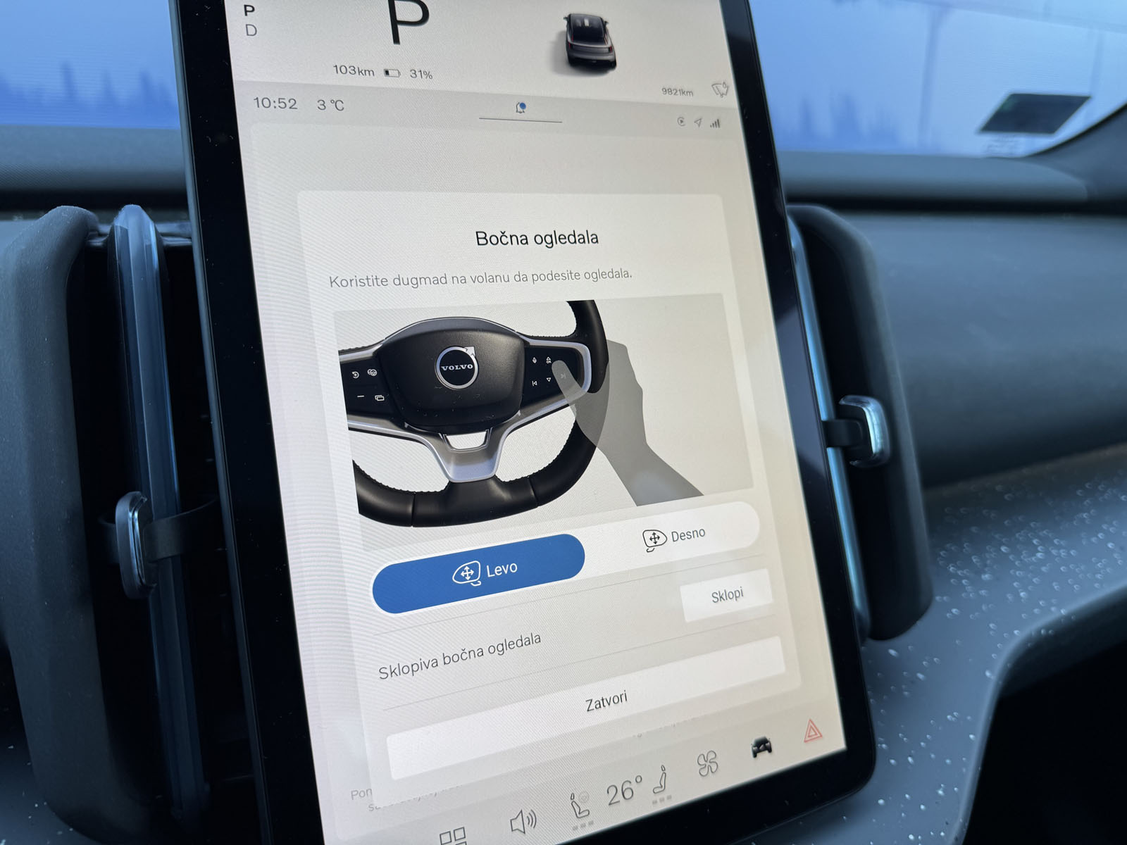 Priča sa fizičkim tasterima završava se na centralnom naslonu za ruku gde se nalaze prekidači za kontrolu prozora. I to je to! Nema komandi klime, retrovizora, pa čak ni tastera za pokretanje vozila! Kada priđete automobilu on se automatski otključava i nakon što vežete pojas i pomerite ručicu menjača u položaj “D” vožnja počinje. Realno, jednostavnije ne može. Ipak, u svakodnevnoj eksploataciji odsustvo fizičkih tastera u pojedinim situacijama ume da bude naporno. Banalan ali realan primer – zaustavljeni ste na semaforu i automobil iza vas vam se približava. Vi ste videli pogodan trenutak da promenite temperaturu ili smer strujanja vazduha ali na na displeju se automatski prikazuje rastojanje od nadolazećeg vozila. Ono što ste naumili nećete biti u mogućnosti da uradite sve dok se prikaz rastojanja od vozila ne skloni sa dela ekrana ispod koga je kontrola ventilatora. Nije stvar od životne važnosti ali može da iritira.