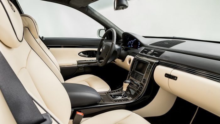 Unutrašnjost ima bež kožu u kombinaciji sa detaljima od crnog laka i ugljeničnih vlakana. Oprema uključuje adaptivni tempomat, kameru za vožnju unazad, telefonski paket, DVD plejer, ambijentalno osvetljenje, biksenonske farove sa aktivnim praćenjem krivina i još mnogo toga.