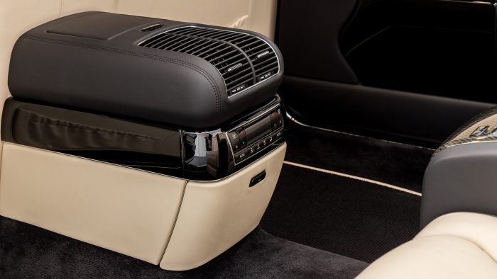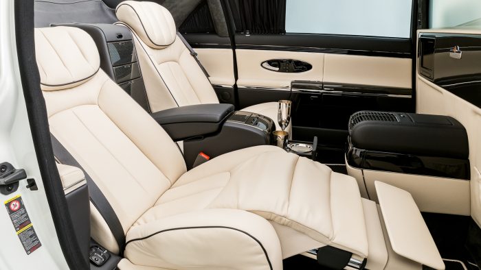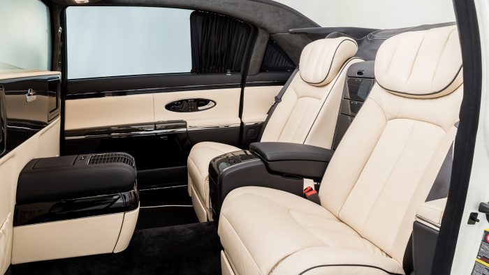 Unutrašnjost nema šest sedišta Mercedesa 600, ali i dalje dobija istu elektronski kontrolisanu pregradu sa mogućnošću zatamnjivanja, dve fotelje za putnike pozadi sa uvlačivim naslonima za noge, zavese, držač za šampanjac, plus dva ekrana multimedije.